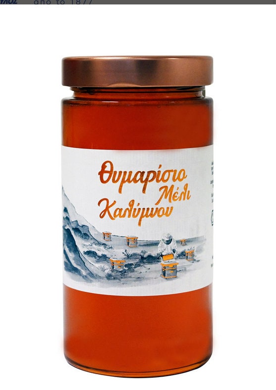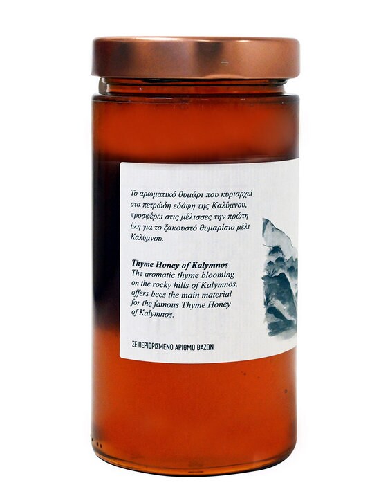 On the rocky slopes of Kalymnos and Halki island , full of purple flowers, Thyme Honey, with amber color and rich flavor, is collected in early summer.